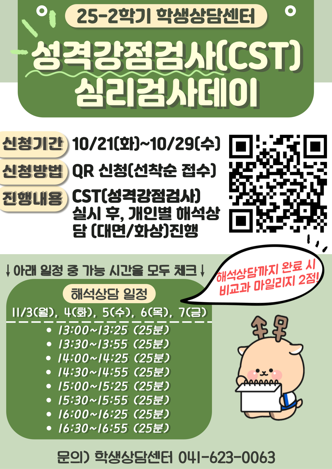 천안 [학생생활] [학생상담센터] 25-2 <성격강점검사> 심리검사데이 신청 안내 -
